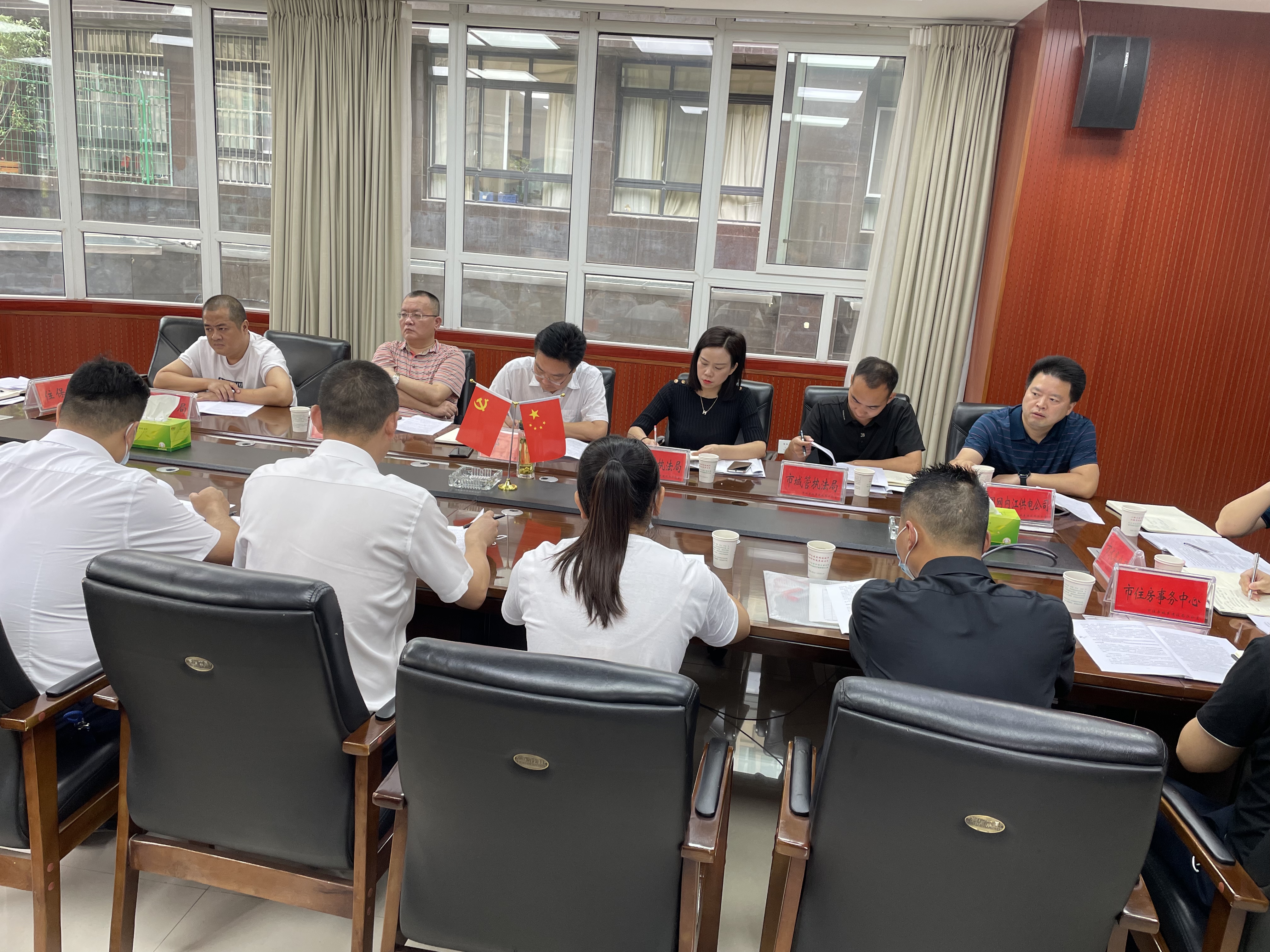 参加人员:内江市住房和城乡建设局副局长郭飞、住保科、城建科、市住房事务中心,市公安局,市市场监管局,市城管执法局,市供电公司,市供水公司,内江市物专会常务委员单位代表(10名)