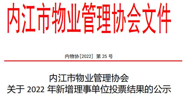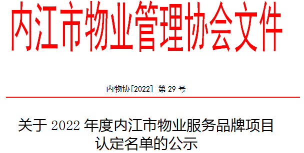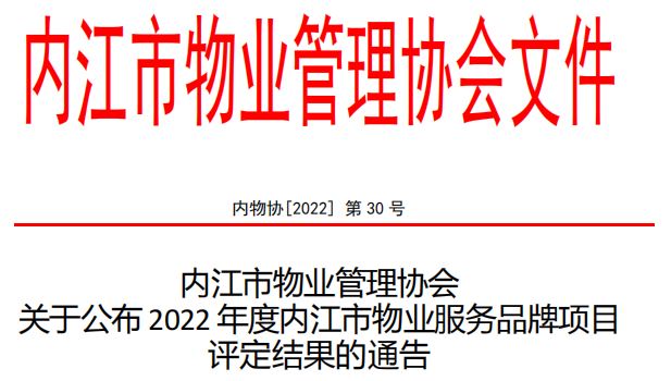 关于公布2022年度内江市物业服务品牌项目评定结果的通告