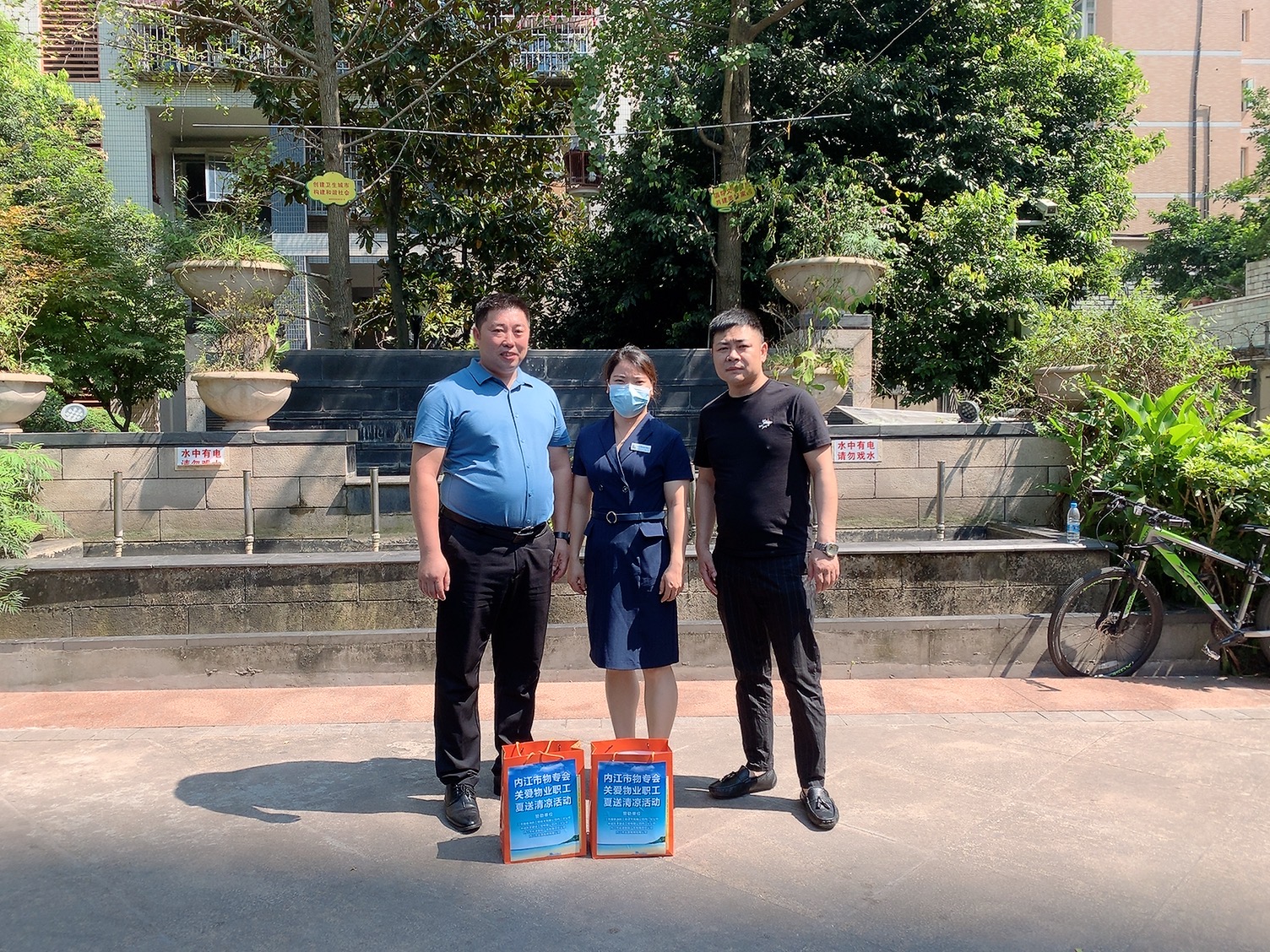 连日来,内江天气持续高温,全市物业工作者依然坚守一线,战高温、守家园,只为业主创造舒适安全的环境。8月3日,为关爱坚守一线的物业人,内江市住房保障和房地产事物中心、内江市市中区住房保障和房地产服务中心、内江市东兴区住房保障和房地产服务中心、内江市房地产业协会物业管理专业委员会(以下简称物专会)联合开展“夏日送清凉、关爱到一线”的高温慰问活动,分组深入基层,为一线员工送去夏日清凉、送去组织关怀。