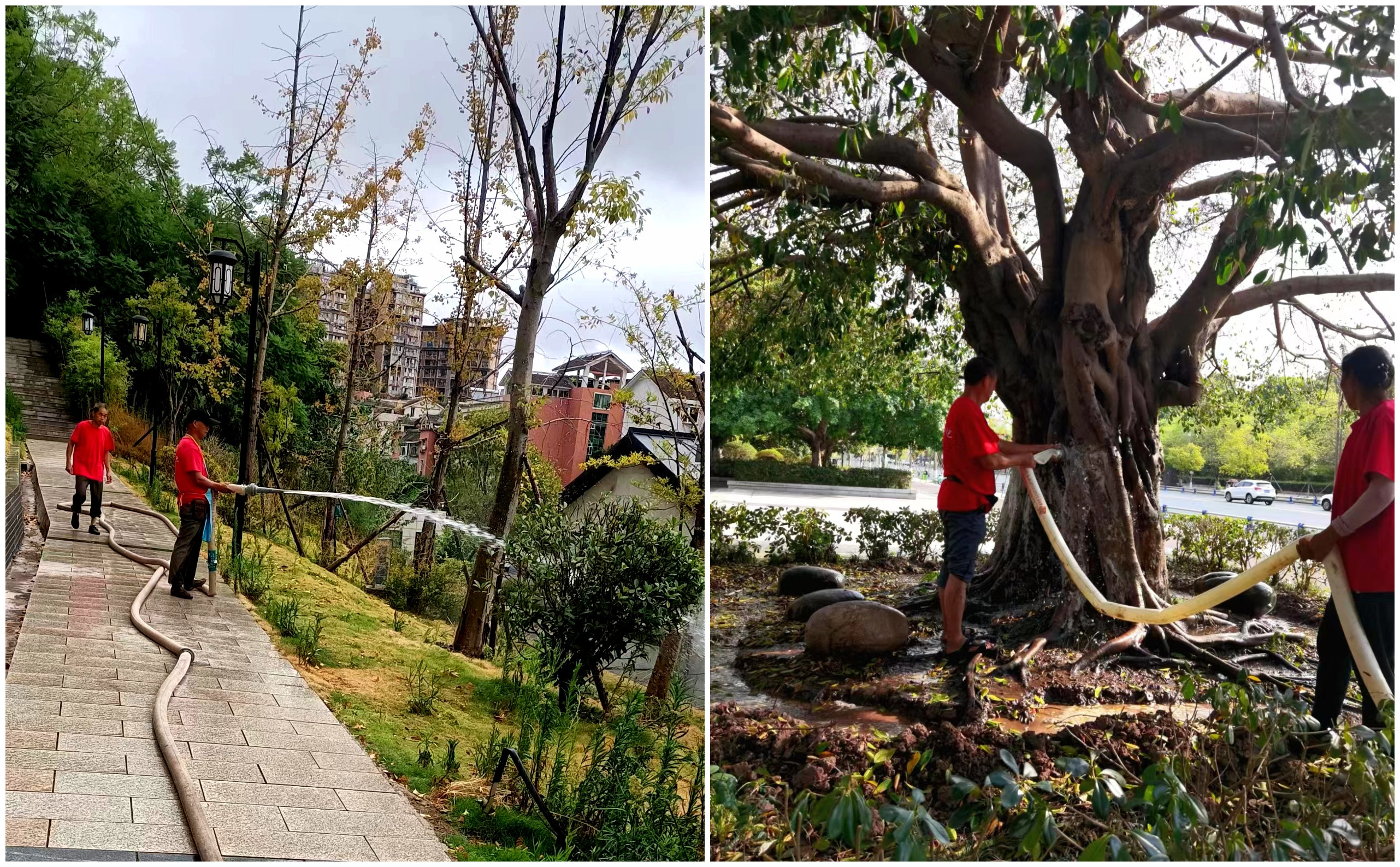 持续的高温干旱天气,让园区的绿化养护工作带来了严峻考验和挑战,为应对酷暑天气,减轻盛夏高温给绿植带来的不利影响,最大限度降低高温危害,物业服务人积极开展绿植抗旱浇灌工作,迅速掀起了抗旱保绿的工作热潮。