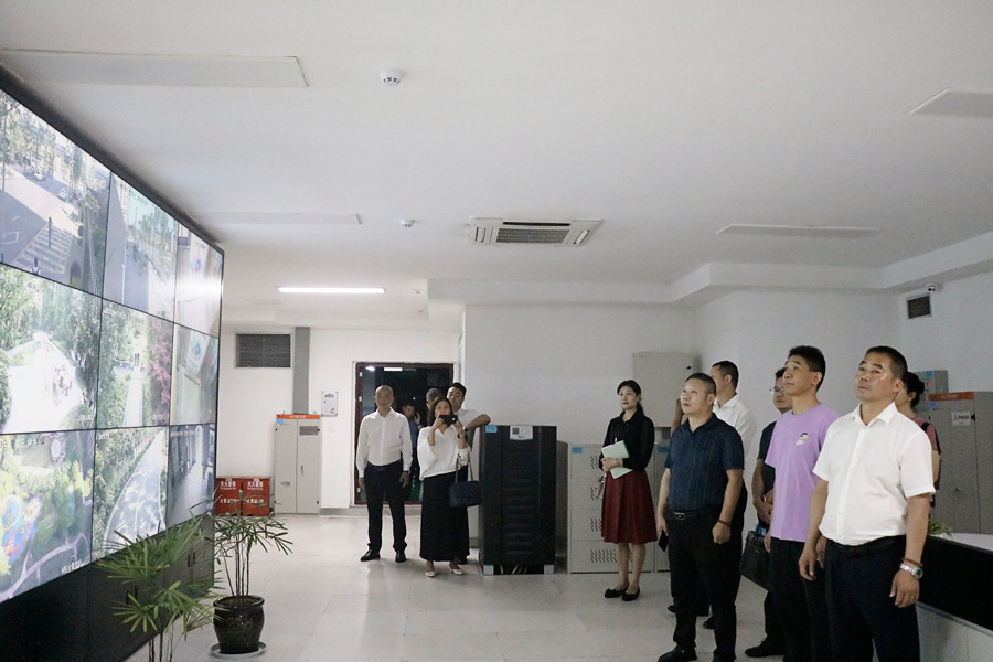 考察组参观了万晟城·华府项目,在项目负责人的引导下,对小区园林、消防泵房、中控室、红色物业、物业客户服务中心、物业服务档案室等设施设备进行了参观。