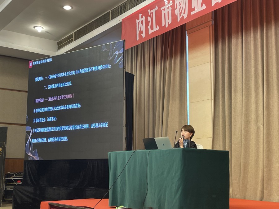 培训会由协会秘书长刘福刚主持召开,协会法律顾问蒋露茜主讲,主讲的内容是“物业服务典型法律问题剖析”,分四个部分讲述:一、业主的建筑物区分所有权,分5小点讲述:1.业主的专有权、共有权及表决权,2.物业共有部分的内容,3.业主共同决定事项的类别,4.物业费调价实务案例,5.欠费业主能否当选业委会成员?能否行使表决权?;二、《民法典》侵权责任编物业企业的管理人责任,分2点讲述:1.《民法典》侵权责任编的归责原则,2.物业企业安全保障义务的界限;三、典型实务案例剖析及风险防范,分4点讲述:1.外墙砖脱落致物损害、致人伤亡案例并分析,2.高空抛物致人伤亡案例并分析,3.共用主管道堵塞致损案例并分析,4.物业企业相关的责任承担及风险防范;四、物业费的请求权,分3点讲述:1.业主支付物业费的法律依据,2.物业费的诉讼时效,3.如何进行物业费的书面催收。