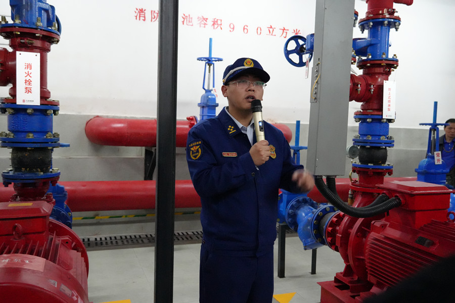 演练结束后,由市消防救援支队综合指导科副科长唐珩理现场讲解消防控制室、消防泵房、消防器材等主要用途及专业知识。