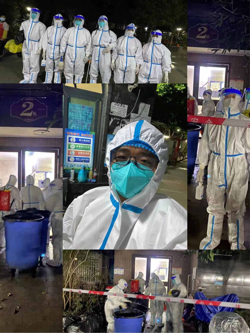 每日对整个园区及楼栋进行消杀,天不亮就开始准备核酸采集的场地,通知和组织小区业主有序排队,为业主采购蔬菜包和配送。