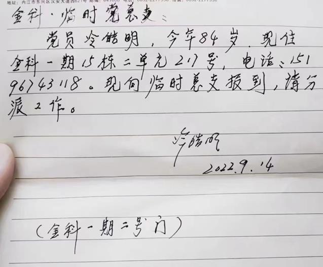 在疫情中,由于人员的紧张,形成了很多的临时党支部,金科临时党总支收到了一份来自老党员的申请,饱含了党员的责任心与担当。