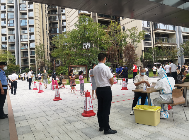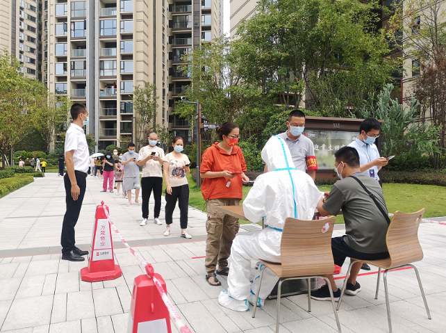 在全员核酸采样中,党员先锋队积极响应,连夜完成现场采集场地布置搭建,设警戒线、搭建帐篷等,为全员核酸采集做好了充分准备。核酸采样现场,他们全程维持秩序,引导业主有序排队,提前组织测温扫码登记以减少排队时间,确保了整个采样过程有条不紊。