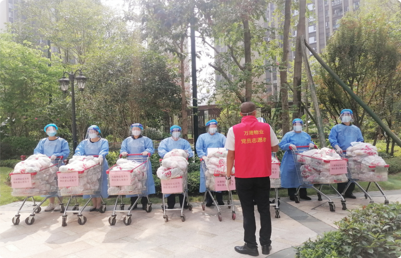 “疫”发突然,恰逢中秋,党支部了解到部分业主家中过节的食物、蔬菜、水果等准备不足,为避免业主外出至人员密集处,解决特殊时期买菜难题,及时推出了“万晟菜篮子”行动,物业人员变身“采购员”,义务为业主采购蔬菜。业主可通过电话或微信向物业管家“点菜”,对于不方便取菜的业主,物业人员免费为他们“送货上门”,避免了近距离接触。截止目前,已为业主义务购买、配送“蔬菜包”“肉类包”8500余份。“万晟菜篮子”行动的开展情况先后在《i内江》等多个主流媒体上进行了报道。
