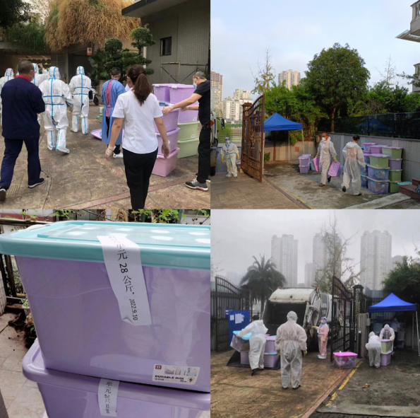 思铭物业所服务的世纪滨江⼩区为⾼⻛险区域,每天的垃圾 都需要分类、消毒、打包处理后才能被清理,物业⼈每天都需要花 费⼤量的时间⽤于打包分类,为业主提供安⼼的居住环境。