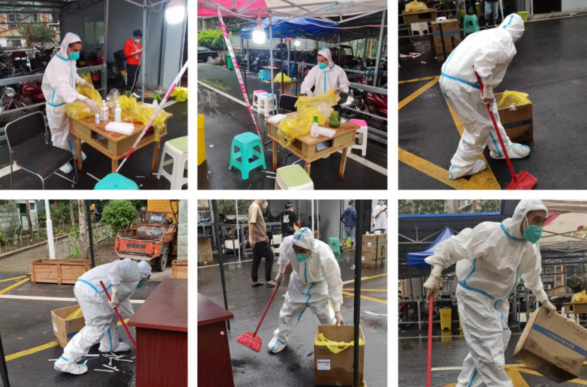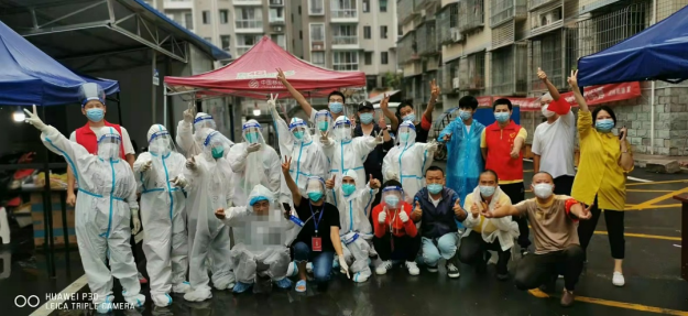 抗疫初期的⾼温,核酸扫码者穿着密不透⻛的防护服,汗⽔ 不仅湿透了⾐背,⽽是感觉从⽔⾥捞出来的⼀样,浑身湿透,冒着中暑的⻛险,咬⽛坚持,核酸扫码者已算⾟苦,核酸采样的医 护们防护要求更⾼,且因⼈⼿有限⽆法替换,为了节约珍贵的防 护装备,不能喝⽔不能上厕所,需要在防护服⾥待四个⼩时,闷 热难受的滋味⽆以⾔表。他们分别是威远县新场镇卫⽣院:宋柳 毅,温馨,倪志芬,威远县东联镇卫⽣院两⼈及其他未能留下信 息的医护⼈员。当他们在核酸采样⼯作结束后,搭乘出租⻋去内 江师院⽅舱送物资,出租⻋司机知道她们是医护⼈员后,坚持免 收⻋费,感动着⼤家,⼜因上⻔为 92 岁⾼龄的⽼⼈采核酸时,⽼ ⼈深表感谢的鞠躬,⽽眼泛泪花,这就是我们可爱的⼤⽩们,新 时代最可爱的⼈,居⺠们都昵称“⼩可爱”。
