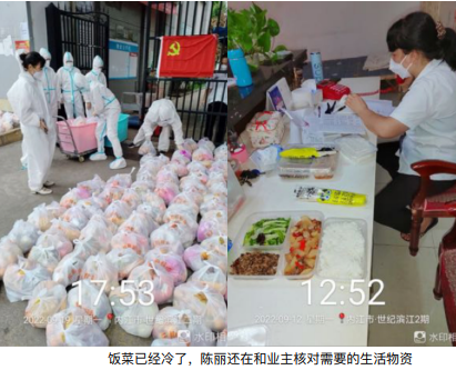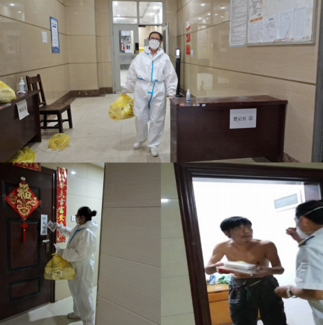 了解物业⼯作⼈员没有换洗⾐服,没有⽣活物资,很多业主 纷纷将家⾥备⽤的拖鞋、⽶⾯、被褥送到物业办公室。