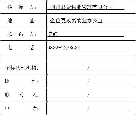 1.1本招标项目3幢1单元2号电梯,项目业主为 3幢1单元 ,建设资金来自维修基金,项目出资比例为100%,招标人为四川君泰物业管理有限公司 。项目已具备招标条件,现对该项目的施工进行公开招标。