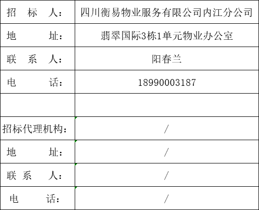 1.1本招标项目翡翠国际小区20栋电梯钢带、轿厢导向轮及对重导向轮更换,项目业主为四川衡易物业服务有限公司内江分公司,建设资金来自物业专项维修资金,项目出资比例为100%,招标人为四川衡易物业服务有限公司内江分公司。项目已具备招标条件,现对该项目的施工进行公开招标。