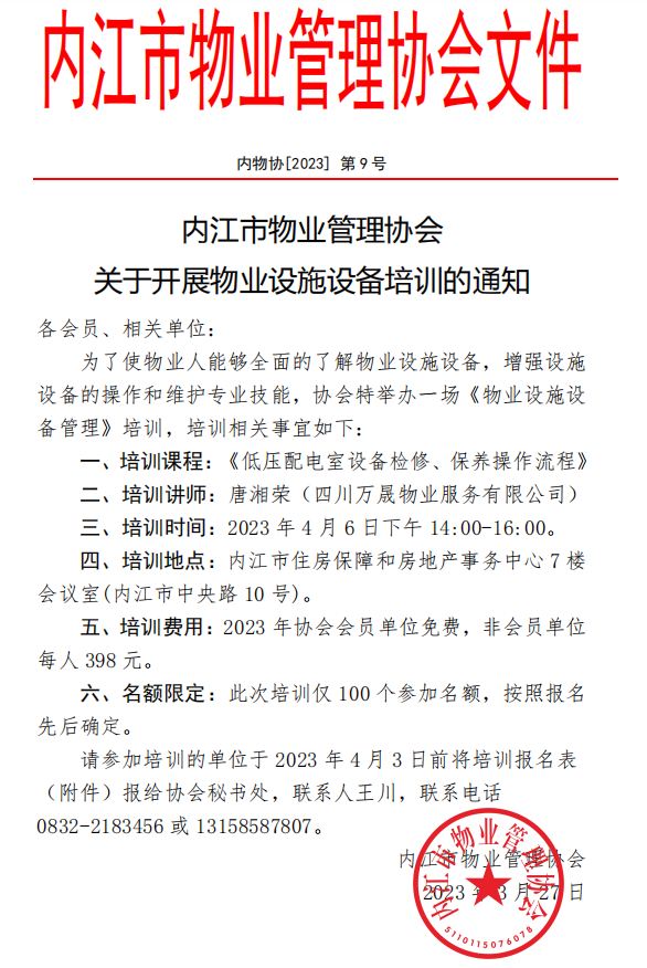 关于开展物业设施设备培训的通知