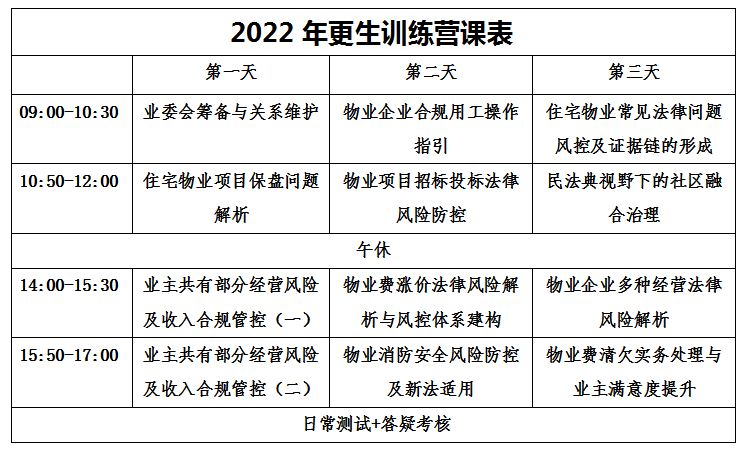 为了物服企业能在日常物业管理中掌握风险防控方法,解决现存难题的同时形成日常管理风险防控意识,更加专业性的开展工作,协会联合法眼教育(深圳)有限公司于近期举办法务经理人更生训练营,现将有关事项通知如下: