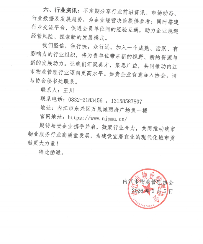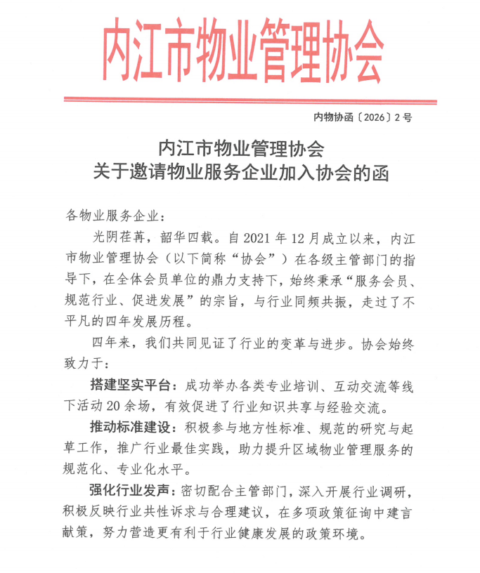 上一篇:内江市物业管理协会召开2025年度会员大会暨年会