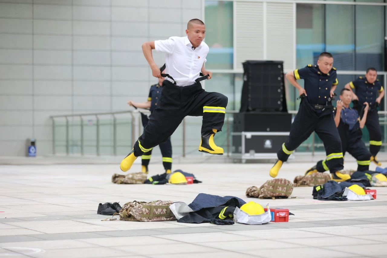 此次联合演练由四川省住房和城乡建设厅、四川省消防救援总队指导,四川省房地产业协会主办,资阳市住房和城乡建设局、资阳市物业管理协会、资阳市车城佳美物业有限公司承办,资阳市高新区管委会、资阳市消防救援支队、眉山市物业服务协会、金科智慧服务四川分公司、四川太空蓝天物业管理有限公司、四川万晟物业服务有限公司、自贡华商物业服务有限公司等单位协办。演练内容包括团队风采展示、义务消防队力量、紧急救护技能、消防器材使用、消防装备穿着、灭火技能等6项内容。万晟物业担负了消防装备穿着任务。
