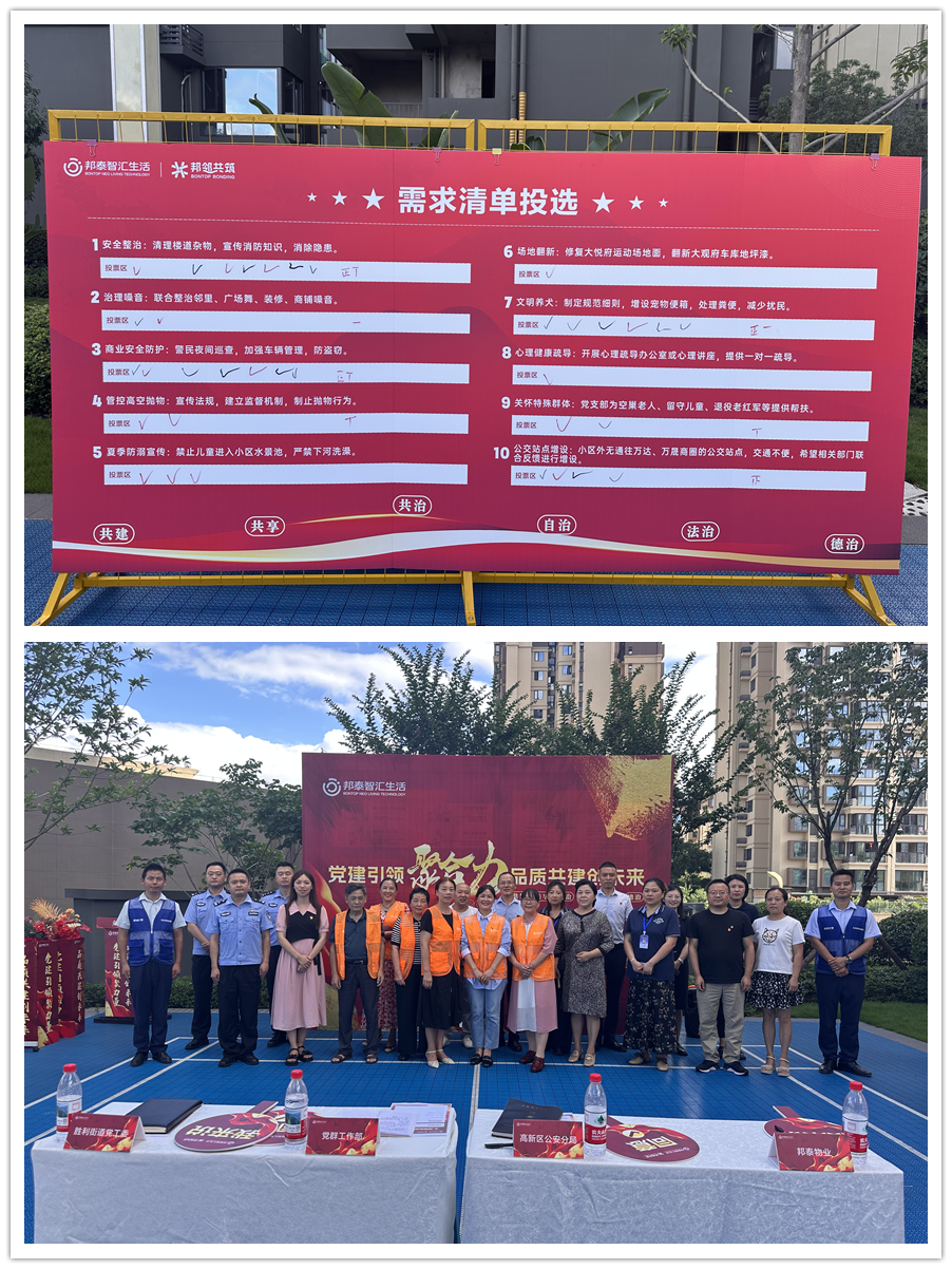 为深入贯彻基层治理“五治融合”要求,构建“共建共治共享”社区治理新格局,6月30日,高新区邦泰大观府&大悦府项目党支部成立大会暨“党建引领·品质共建”第一次会议顺利举行。会议由邦泰物业主持,高新区公安分局、高新区党群工作部、高新区治安大队、胜利街道党工委、新立社区、胜利派出所等相关部门领导及业主代表齐聚一堂,共同见证党支部成立并共商社区治理新路径。