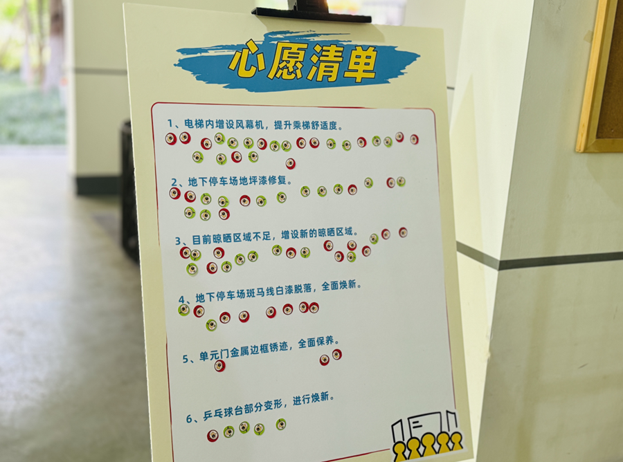 大会现场气氛热烈,业主代表们畅所欲言,积极投身议题讨论。此前,物业及社区已通过线上线下多渠道广泛征集民意,形成了涵盖居民日常关切、具有广泛代表性的17项需求清单。这份凝聚民意的清单成为会议焦点,与会者从不同角度出发,对每一项需求进行了深入探讨,提出了诸多切实可行的宝贵建议。最终,经过公开透明的投票程序,14项需求获得通过。其中,“小区增设公共晾晒区”、“严禁车库遛狗”、“南门梯坎增设安全扶手”三项议题因呼声最高、与居民生活品质和安全提升最为紧密,被确定为优先攻坚项目,并当场组建专项行动小组负责快速推进落实,展现了议事成果的迅速转化。