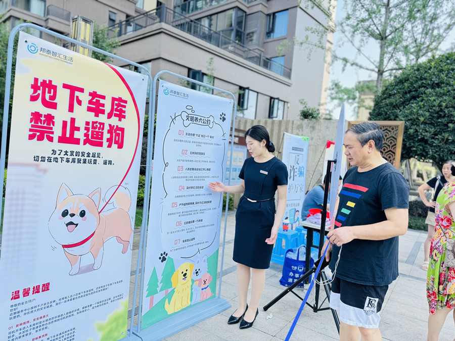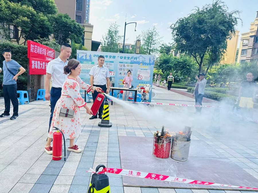 尤为重要的是,6月16日,物业紧密围绕“安全生产月”主题,联合相关单位在小区内举办了“全国安全宣传咨询日”活动。此次活动不仅是对“睦邻议事”中确定的“严禁车库遛狗”等安全议题的深化宣传,更是对业主全方位安全意识的提升。活动现场,物业人员细致讲解消防安全知识,并指导业主实操灭火器,提升应急自救能力;6月25日特邀东兴区司法局法律志愿者为居民免费解答《民法典》、未成年人保护法等法律困惑;同时,针对“车库遛狗”的潜在危害(如惊吓、卫生、交通安全)、电信网络诈骗防范等热点安全问题进行了重点科普,切实增强了居民的安全防护意识与法治观念。