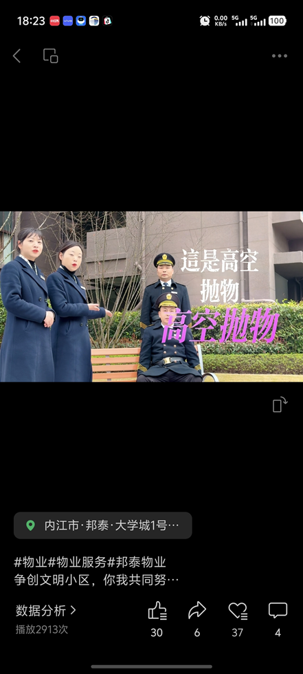 一张张被遗忘在公告栏的纸质倡议书,如今变成业主群里刷屏的趣味短视频。大学城1号小区物业以创新思维破局传统宣传困境,围绕高空抛物、文明养犬等痛点,推出系列创意短视频,半年内实现高空抛物投诉下降65%,遛狗拴绳率突破90%,社区文明治理迎来质的飞跃。