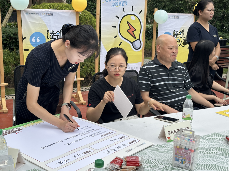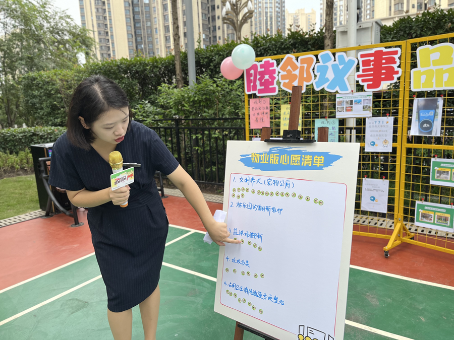 议题丰富多元,人人参与共建。游戏环节结束后,物业代表发言回顾上半年睦邻议事成果,展示小区焕新面貌,对比前后巨大改变,并诉说未来愿景。议事活动以物业及业主两个角度,以环境维护、设施优化、服务提升三大类为主题,提出多项议题供与会人员讨论。在主持人的引导下在场人员进行积极讨论,并进行议题投票票选表决,最终确定议题内容,并现场敲定三个月内行动方案并公示。