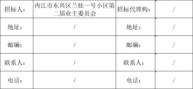 1.1本招标项目:兰桂一号13号梯换梯工程,项目业主为兰桂一号小区全体业主,建设资金来自房屋维修资金,招标人为内江市东兴区兰桂一号小区第二届业主委员会。现对该项目的施工进行公开招标。