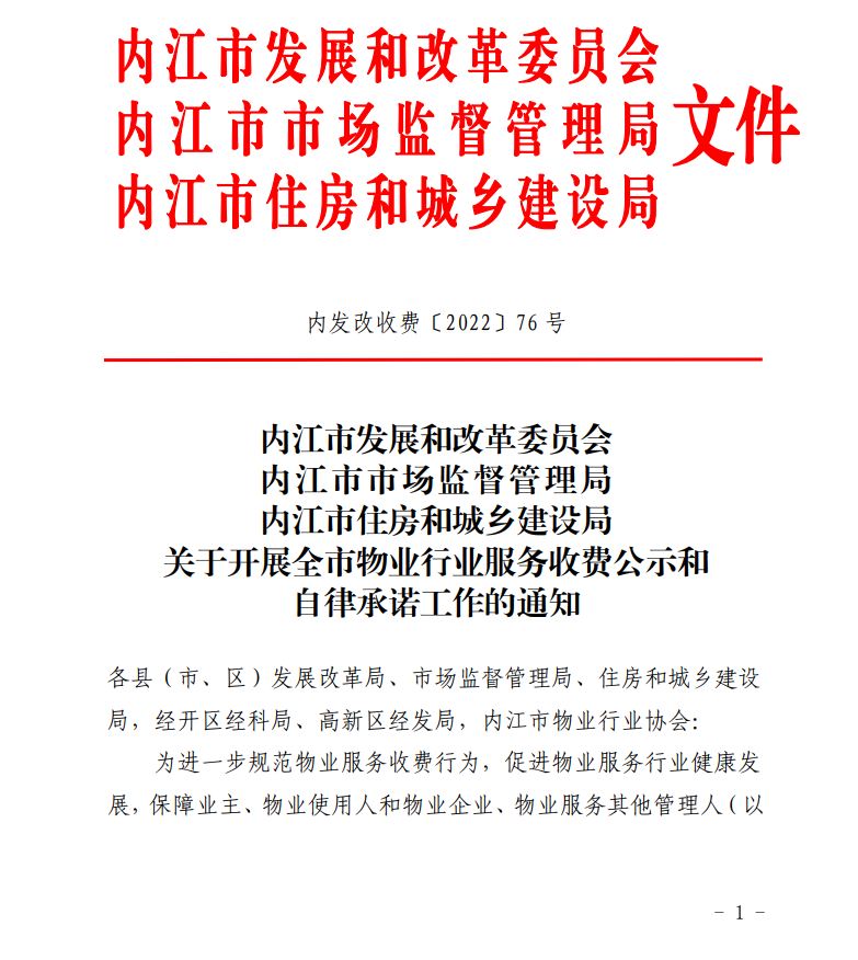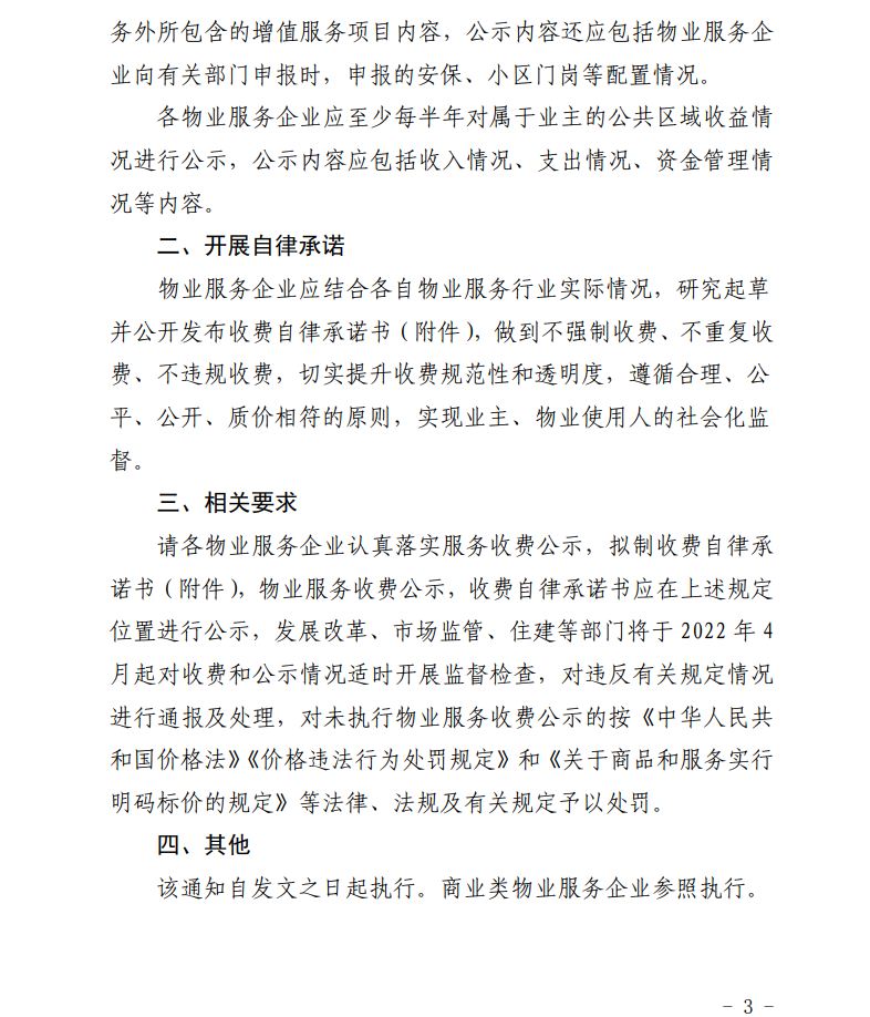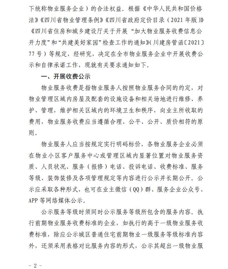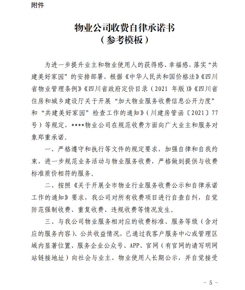 关于开展全市物业行业服务收费公示和自律承诺工作的通知